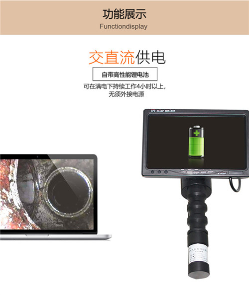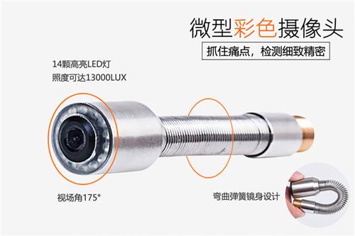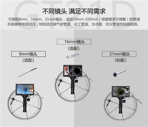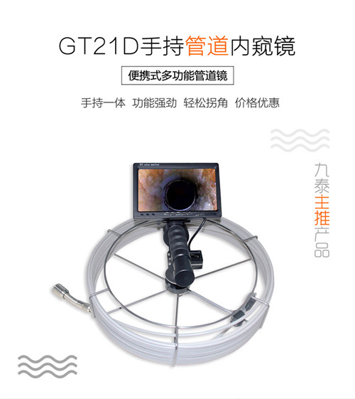 GT21D系列國產(chǎn)工業(yè)內(nèi)窺鏡是一款手持一體設(shè)計的工業(yè)管道內(nèi)窺鏡,鏡頭采用彈簧身設(shè)計,能夠輕松通過1-2個90°或U型彎角,確保檢測的流暢性。GFRP硬質(zhì)檢測線盤采用耐磨耐腐蝕性強的玻璃纖維,直推有力不易打結(jié),收放自如可單人操作,另可選手持式鋼絞線,防摔耐磨韌性足。性價比高,功能i性強。175度廣角直視鏡頭,自帶LED燈光照明,亮度可調(diào)節(jié)??蛇x計米功能,實時顯示檢測線的使用長度。根據(jù)自身需要可搭配21mm/16mm/8mm直視一體鏡頭,滿足各類需求的管道檢測項目。