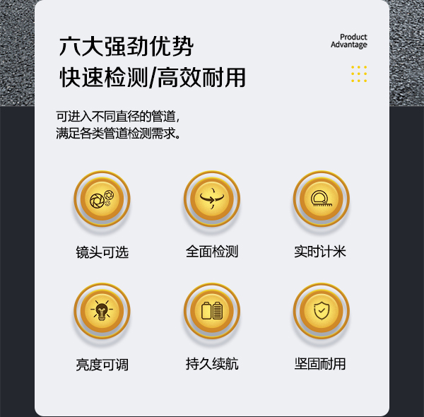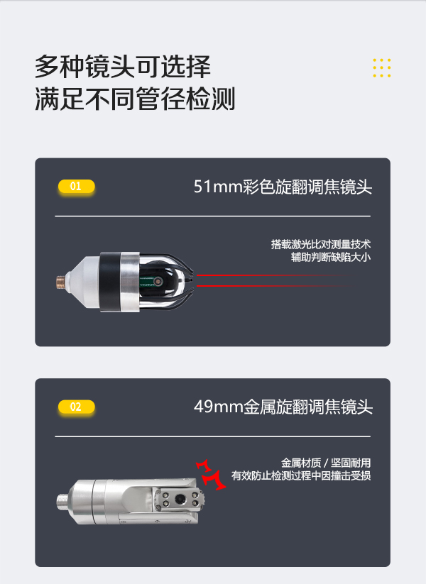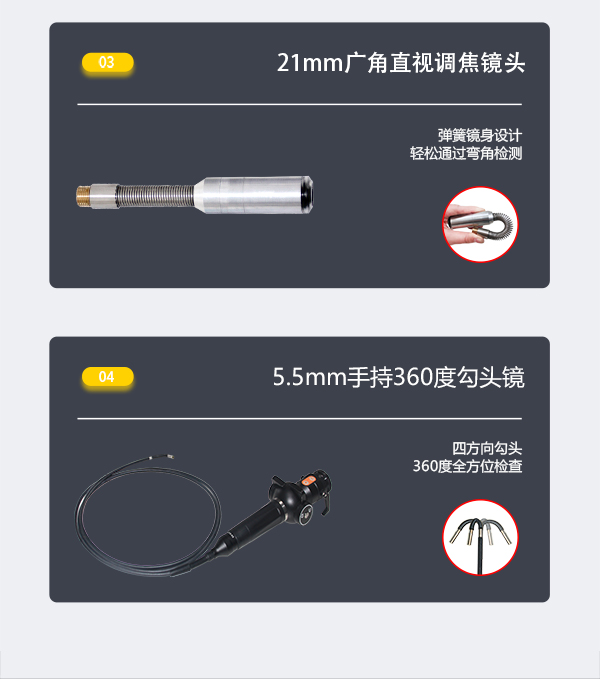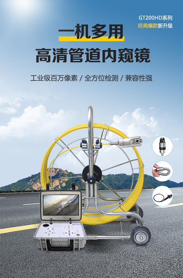 簡介——GT200HD系列高清工業內窺鏡通過全景鏡頭在管道內部的觀察,將檢測圖像數據傳輸至控制主機。此外,搭配勾頭鏡可進入狹窄彎